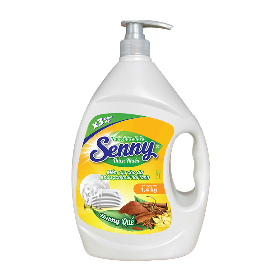 Nước rửa chén Senny hương quế 1.4kg một sản phẩm của công ty Vilaco, với công thức cải tiến hoàn toàn mới giúp đánh tan liên kết dầu mỡ trên bát đĩa ngay cả đồ nhựa sạch bong với 1 lần rửa. Tinh dầu quế giúp khử mùi tanh trên bát đĩa hiệu quả với chiết xuất thành phần tự nhiên làm dịu.