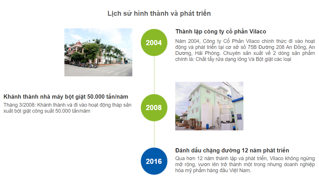 Công ty cổ phần Vilaco là một trong tám doanh nghiệp thuộc tập đoàn VLC - là một trong những tập đoàn công nghiệp tư nhân lớn nhất tại Việt Nam. Lĩnh vực sản xuất kinh doanh chính của Vilaco là chất tẩy rửa dạng lỏng và bột giặt các loại với các sản phẩm chính gồm: nước giặt, nước rửa chén, nước lau sàn, nước xả vải, dầu gội, sữa tắm, nước rửa tay, bột giặt