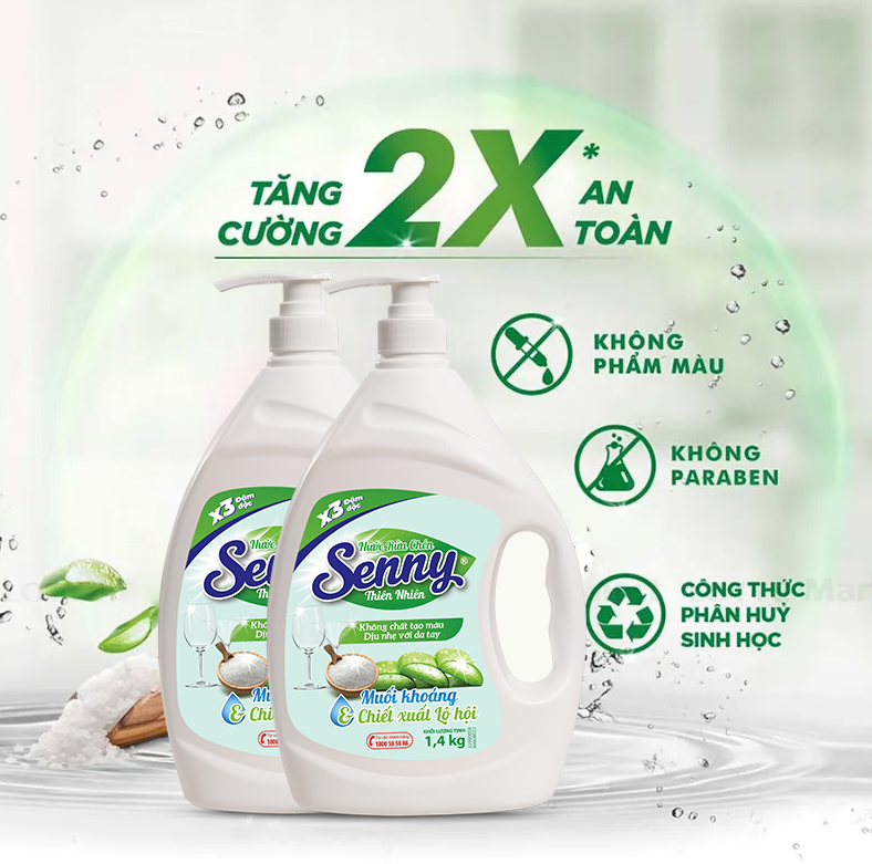 Nước rửa chén Senny là sự kết hợp hoàn hảo của muối khoáng và lô hội. Chỉ cần một giọt nước rửa chén Senny lô hội, chén đĩa của bạn sẽ sạch bóng. Khử nhanh mùi tanh – Sạch bong dầu mỡ!