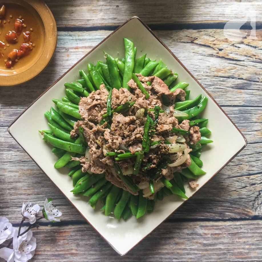 Đậu tằm xào hành lá có thể cho thêm nước cốt gà/bột nêm gà để dậy mùi thơm và ngậy.