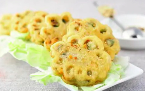 Củ sen kẹp thịt chiên giòn là một món ăn khá thú vị với lớp vỏ vàng ươm, giòn rụm bên ngoài còn lớp nhân bên trong thơm vị nấm, ngọt vị thịt, ăn rất ngon miệng.
