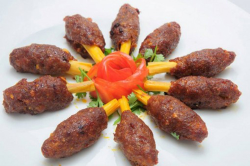 - Bao hỗn hợp thịt mực quanh mía. Làm như vậy cho đến hết nguyên liệu.