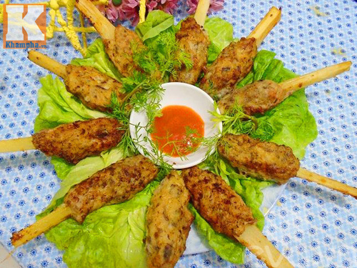 - Khi chạo bò chín xếp lên đĩa chấm cùng tương ớt. Thỉnh thoảng đổi món cho cả nhà với chạo bò nướng bạn nhé.