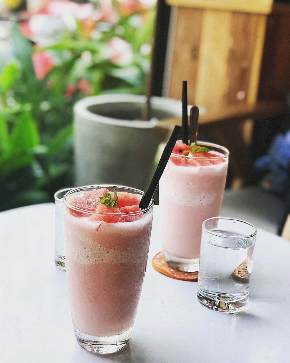 Sinh tố dưa hấu: Dưa hấu là loại trái cây có vị ngọt, nhiều nước, có thể ăn trực tiếp, làm kem hoặc sinh tố. Để có được ly sinh tố mát lạnh, bạn xay nhuyễn dưa hấu cùng sữa đặc, đá viên, đường hoặc mật ong. Khi gần hoàn thành bạn có thể cho thêm chút muối để ly nước tròn vị hơn.