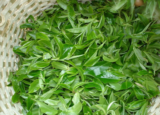 Nếu nhà bạn có lá trà tươi, hãy vo lá trà này cho vào phích sau đó đổ nước sôi 100 độ C vào ngâm 24 tiếng đồng hồ.