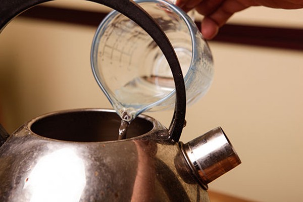 Hầu hết các ấm đun nước đều làm bằng nhôm, vì vậy, có thể bỏ một thìa nhỏ baking soda vào, đun sôi lên vài phút là cặn có thể được loại bỏ. Hoặc cũng có thể đổ baking soda có độ đặc 1%, thêm 500ml nước, lau nhẹ đáy ấm là sạch.