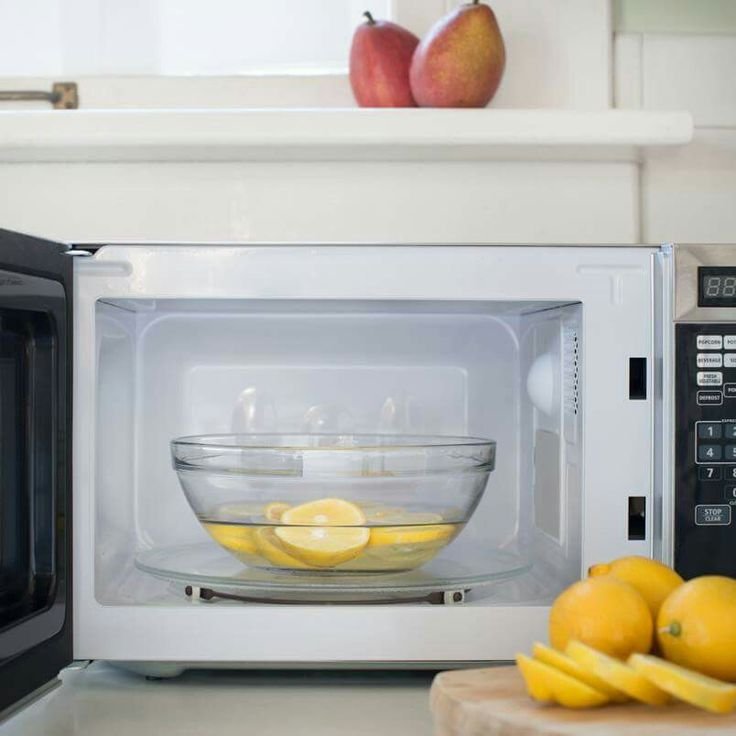 Pha 1 chén nước sạch với một muỗng canh giấm trắng trong tô, quay lò vi sóng trong 5 phút để hơi nước làm bong các vết bẩn. Sau đó, bạn dùng bọt biển hoặc khăn giấy đa năng để lau sạch bên trong lò là xong!
