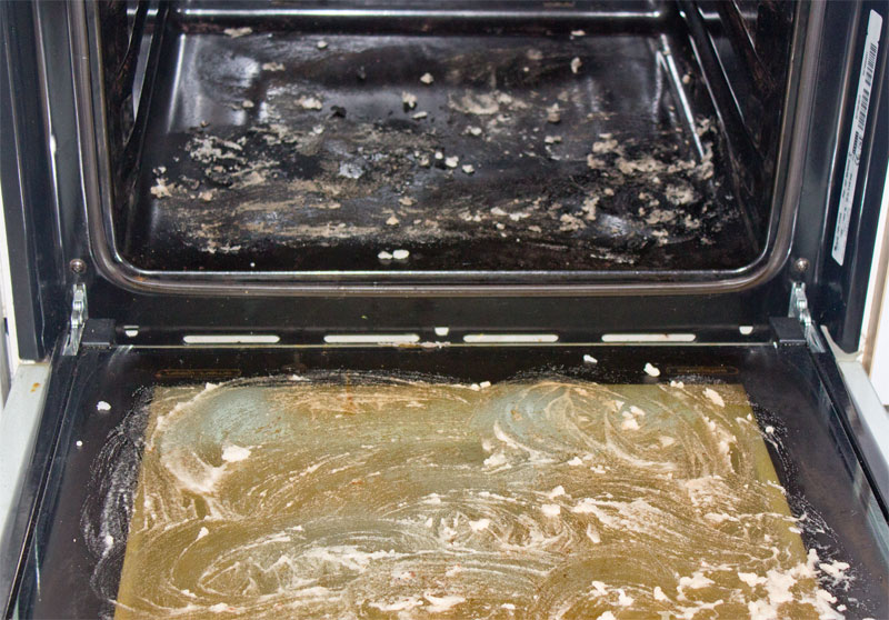 Để làm sạch các vết dầu mỡ trong lò nướng, bạn cần pha 5 muỗng canh baking soda, 5 giọt nước rửa chén, 4 muỗng canh giấm trắng thành một dung dịch rồi bôi khắp thành lò. Đậy nắp lò lại chờ ngấm chất tẩy trong 15 phút, sau đó chỉ cần chà nhẹ và lau rửa như bình thường, mọi vết cáu bẩn, vết dầu mỡ lâu ngày đều sẽ bay biến hết.