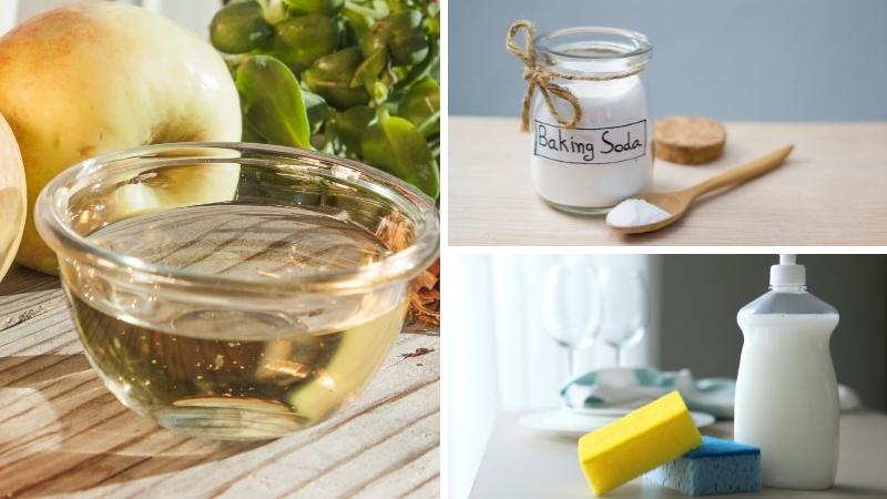Bạn cho lần lượt vào nồi 4 muỗng canh giấm, 1 muỗng canh baking soda (theo tỉ lệ 4 :1). Sau đó, bạn đun hỗn hợp ở lửa nhỏ khoảng 5 phút.