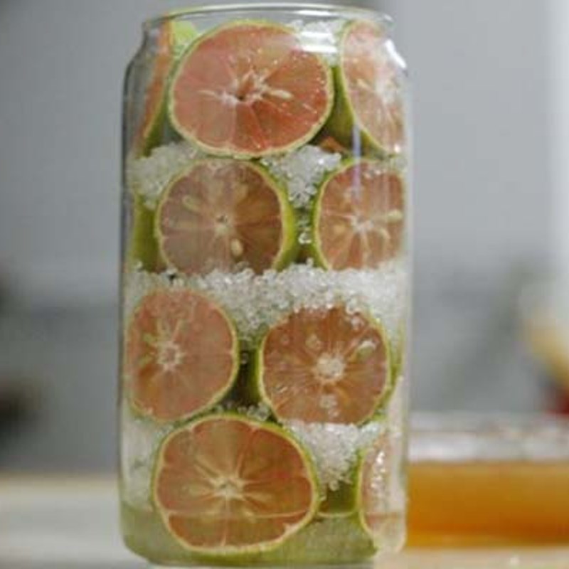 Xếp lớp: Cho một lớp chanh đào vào lọ, rải đều đường phèn, rồi đổ mật ong phủ kín. Lặp lại đến khi đầy lọ.