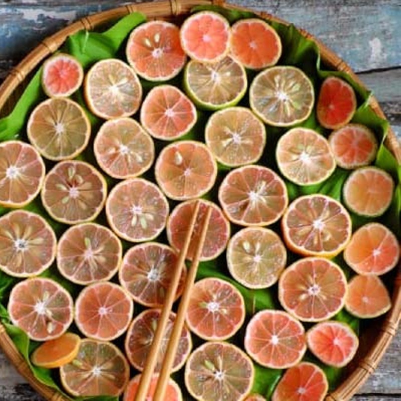Sơ chế chanh đào: Rửa sạch, ngâm nước muối loãng 15 phút, để ráo. Cắt lát mỏng, bỏ hạt để tránh vị đắng.