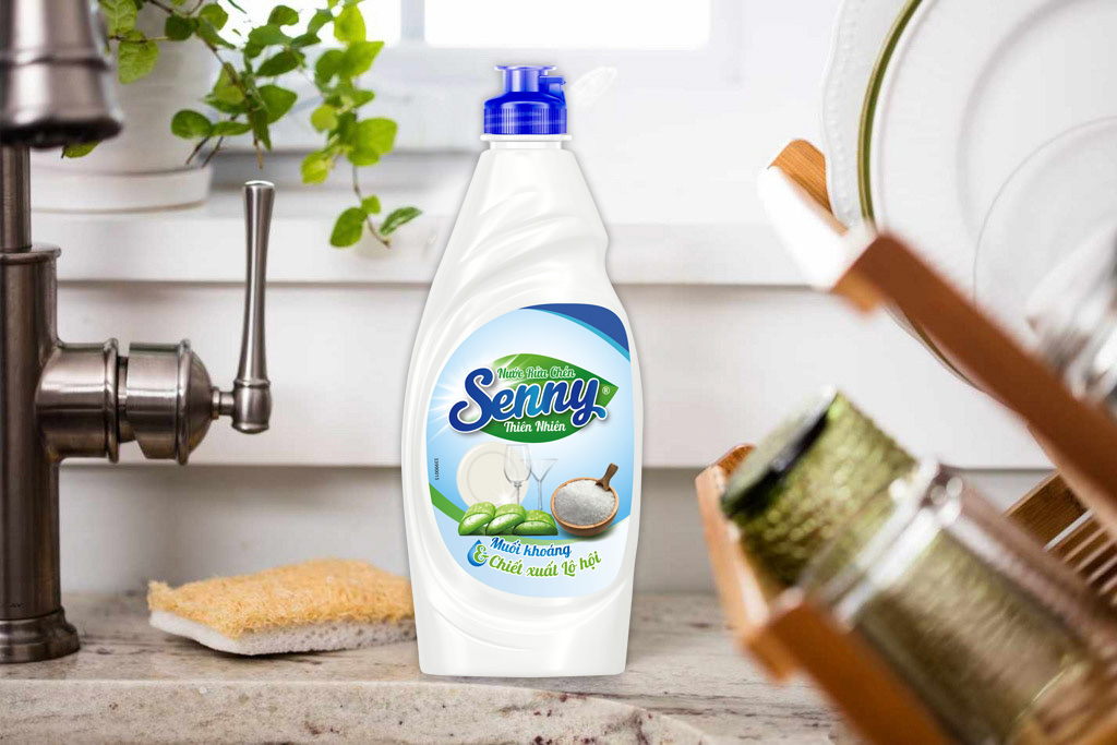 Senny là tự hào là thương hiệu nước rửa chén đầu tiên ở Việt Nam sử dụng các nguyên liệu từ tự nhiên, hiệu quả tẩy rửa cao mà vẫn an toàn tuyệt đối với sức khỏe của người sử dụng. Nước rửa chén Senny được cấu tạo từ 2 thành phần chính là muối biển có tác dụng tẩy rửa, khử mùi và sát khuẩn, còn tinh chất lô hội sẽ giúp làn da của bạn mịn màng, mềm mại hơn sau khi rửa bát xong.