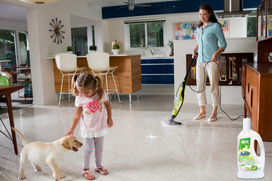Mẹ thư giãn làm việc nhà vì đã có Senny lau sàn hương sả chanh