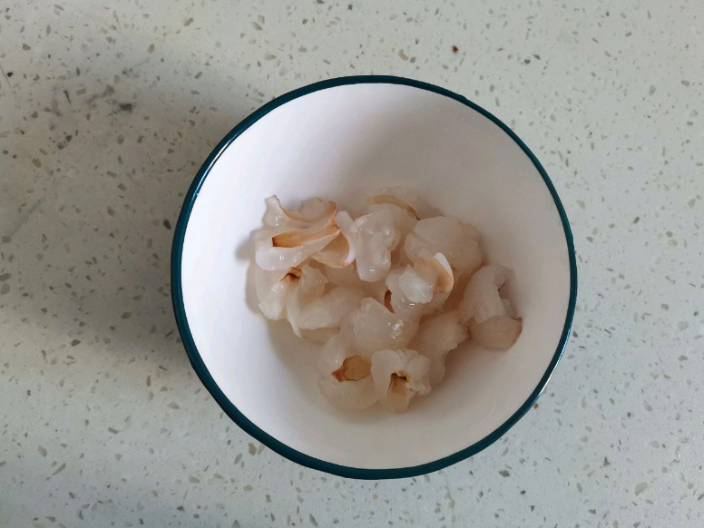 Vải bóc bỏ vỏ, bỏ hạt. Phần thịt vải xé sợi.