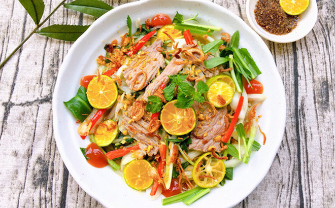 Bò mềm kết hợp với các loại rau và hương thơm đặc trưng của trái tắc hoà cùng vị chua ngọt khiến món nộm thịt bò trở nên lôi cuốn vô cùng.