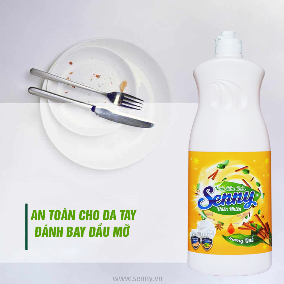 Công việc bếp núc, dọn dẹp sau mỗi bữa cơm gia đình luôn chiếm khá nhiều thời gian của người nội trợ. Đặc biệt là công đoạn rửa bát đũa, nhiều chị em đã để ngâm mà không rửa ngay vô tình khiến vi khuẩn sinh sôi rất nguy hiểm . Một sản phẩm nước rửa bát chất lượng không chỉ giúp làm cho chén bát của bạn sách bóng, thơm mát, diệt khuẩn, không hại da tay mà còn làm giúp rút ngắn thời gian để chị em có thời gian nghỉ ngơi nhiều hơn. Nước rửa chén Senny hương quế với ưu thế vượt trội đánh bay các lớp dầu mỡ mà không lưu lại mùi hóa chất, không hại da tay, rất an toàn bảo vệ sức khỏe cả gia đình. Đây là dòng sản phẩm được rất nhiều khách hàng đánh giá cao hiện nay. Có nước rửa bát Senny hương quế, mẹ tha hồ trổ tại nấu nướng.