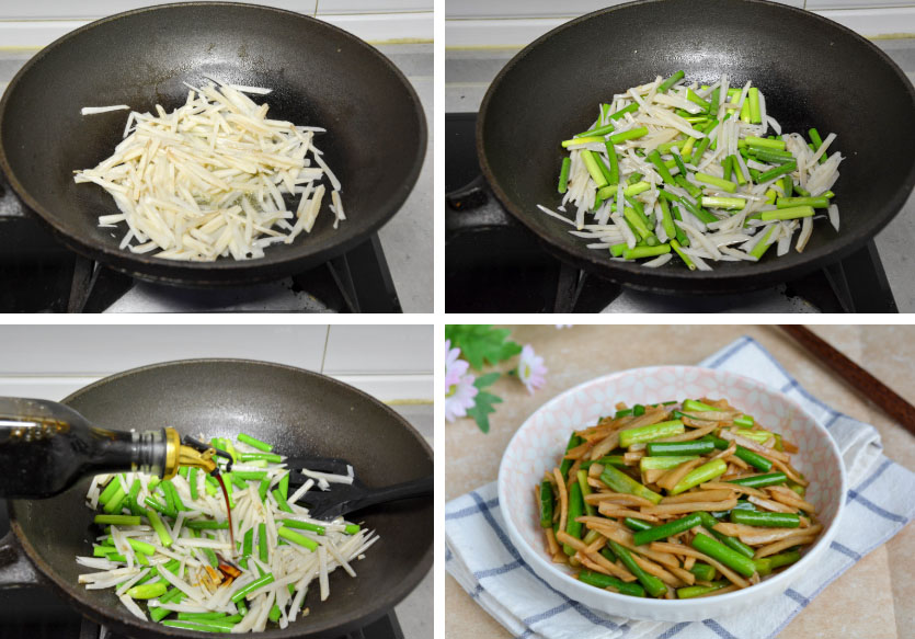 100g ngồng tỏi, 1 củ sen, 15g nước tương, một chút muối, 5g giấm trắng.