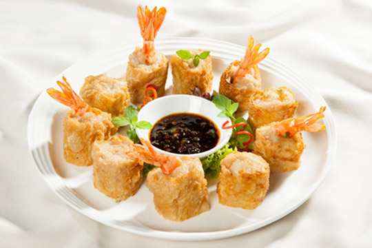 Cuộn phần nhân tôm thịt trong lá đậu hũ ky, chiên vàng đều đến khi giòn rụm. Khi bày ra đĩa, món ăn không chỉ thơm nức mũi mà còn bắt mắt vô cùng.