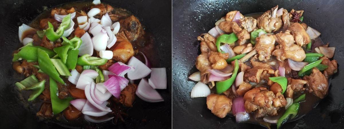Bước 4 - Cuối cùng cho hành tây và ớt vào đảo đều cho hành và ớt chín thì tắt bếp.