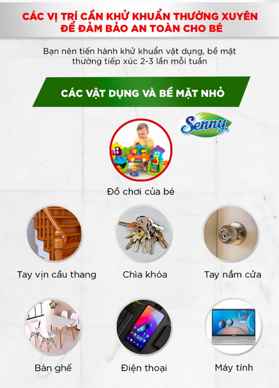 Khử khuẩn nhà cửa an toàn cho gia đình có trẻ nhỏ, mẹ đã biết? Khử khuẩn nhà cửa nên được thực hiện mỗi ngày để đảm bảo rằng, không gian sống của cả gia đình sạch sẽ và trong lành. Tuy nhiên, mẹ đã thực sự biết và lựa chọn sản phẩm giúp làm sạch đúng cách để bảo vệ sức khỏe cho cả gia đình? Cùng Senny tìm hiểu thêm về vấn đề này qua bài viết dưới đây nhé!