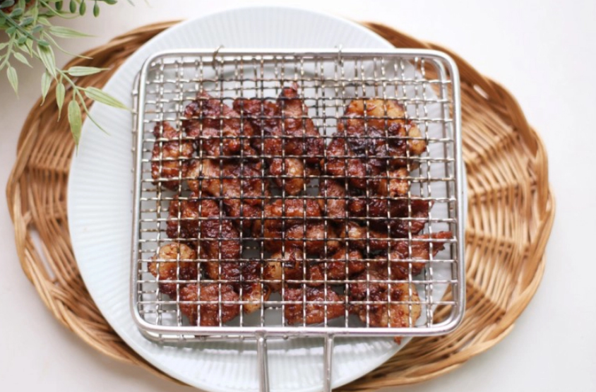 Bước 10: Xếp thịt đã nướng chảo vào vỉ nướng rồi đặt vỉ thịt lên bếp gas để nướng qua là xong. Với cách làm này bạn sẽ cảm nhận được món thịt như được nướng bởi than hoa vậy.