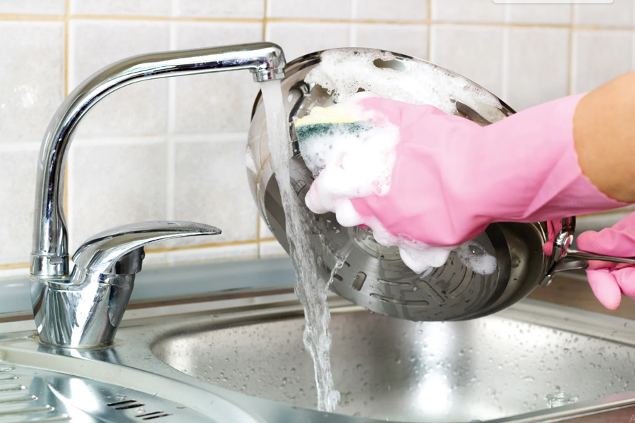 Công dụng của nước nóng làm tách lớp mỡ nhờn bám trên nồi chảo hoặc bát đĩa