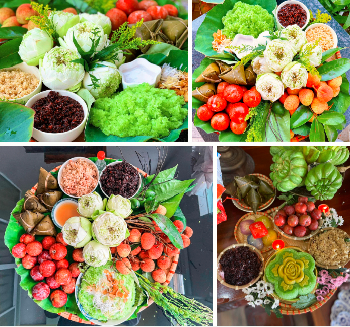 Trong ngày Tết Đoan Ngọ, người dân không dâng lễ mặn như gà hay chân giò, mâm cúng thường có trái cây, hoa tươi và một số phẩm vật đặc trưng trong tiết khí Hạ chí.