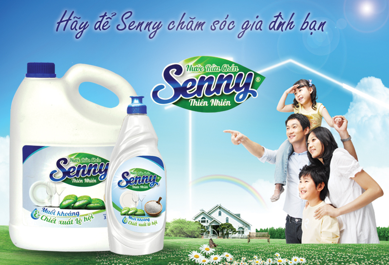 "Senny là thương hiệu nước rửa chén Việt Nam đầu tiên sử dụng nguyên liệu từ thiên nhiên để tạo ra sản phẩm an toàn cho sức khỏe người tiêu dùng. Sản phẩm không để lại mùi khó chịu sau khi sử dụng".