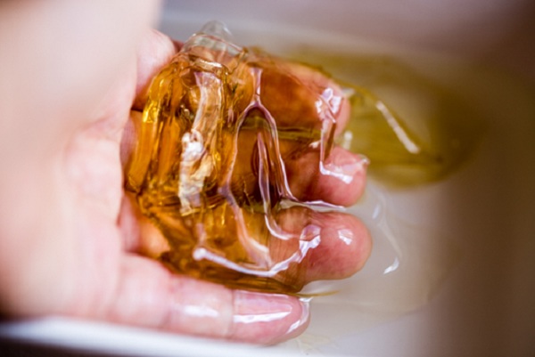 Bước 1: Gelatin cho vào ngâm với nước lạnh trong khoảng 15 phút cho mềm ra rồi vớt ra để cho ráo, bóp nhẹ cho bớt nước.