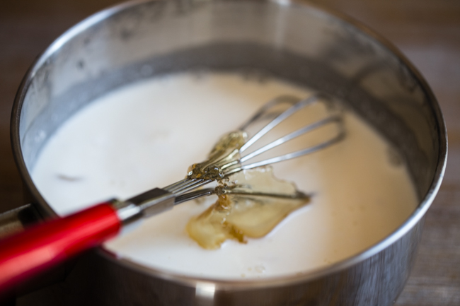 Lưu ý khi hỗn hợp sôi thật già mới cho phần gelatin vào, gelatin đóng vai trò là chất kết dính giúp cho bánh định hình.