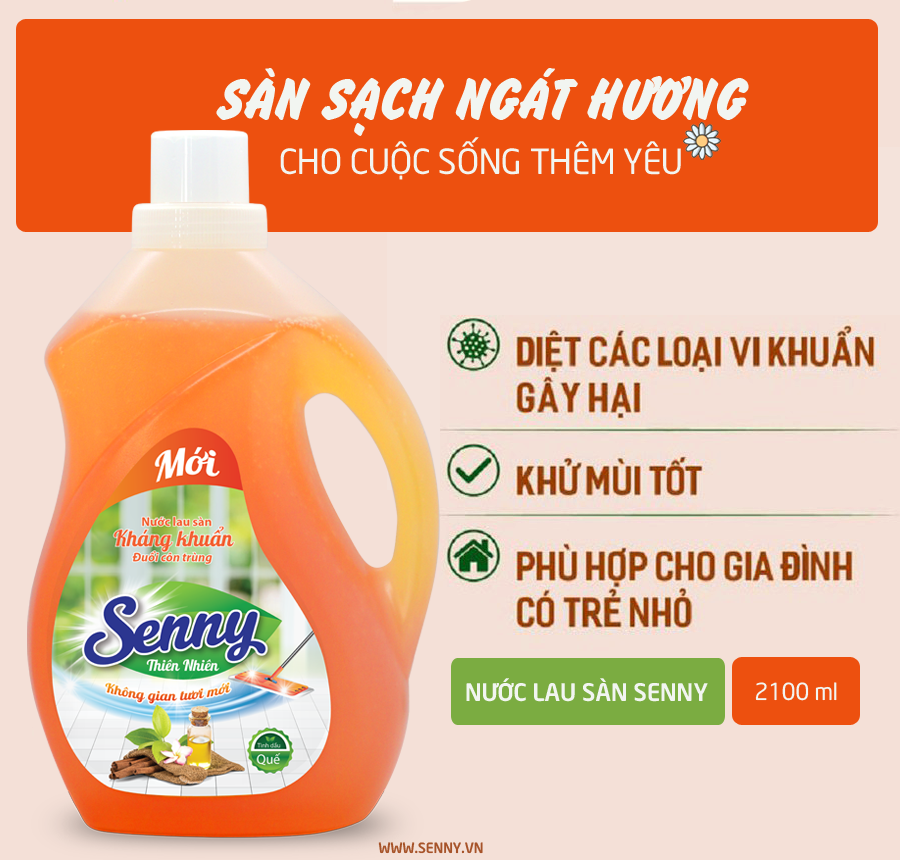 - Nước lau sàn hương quế Senny được nghiên cứu bởi các chuyên gia ngành hóa mỹ phẩm kết hợp chiết xuất tinh dầu quế đã cho ra sản phẩm chất lượng cao 3 trong 1: