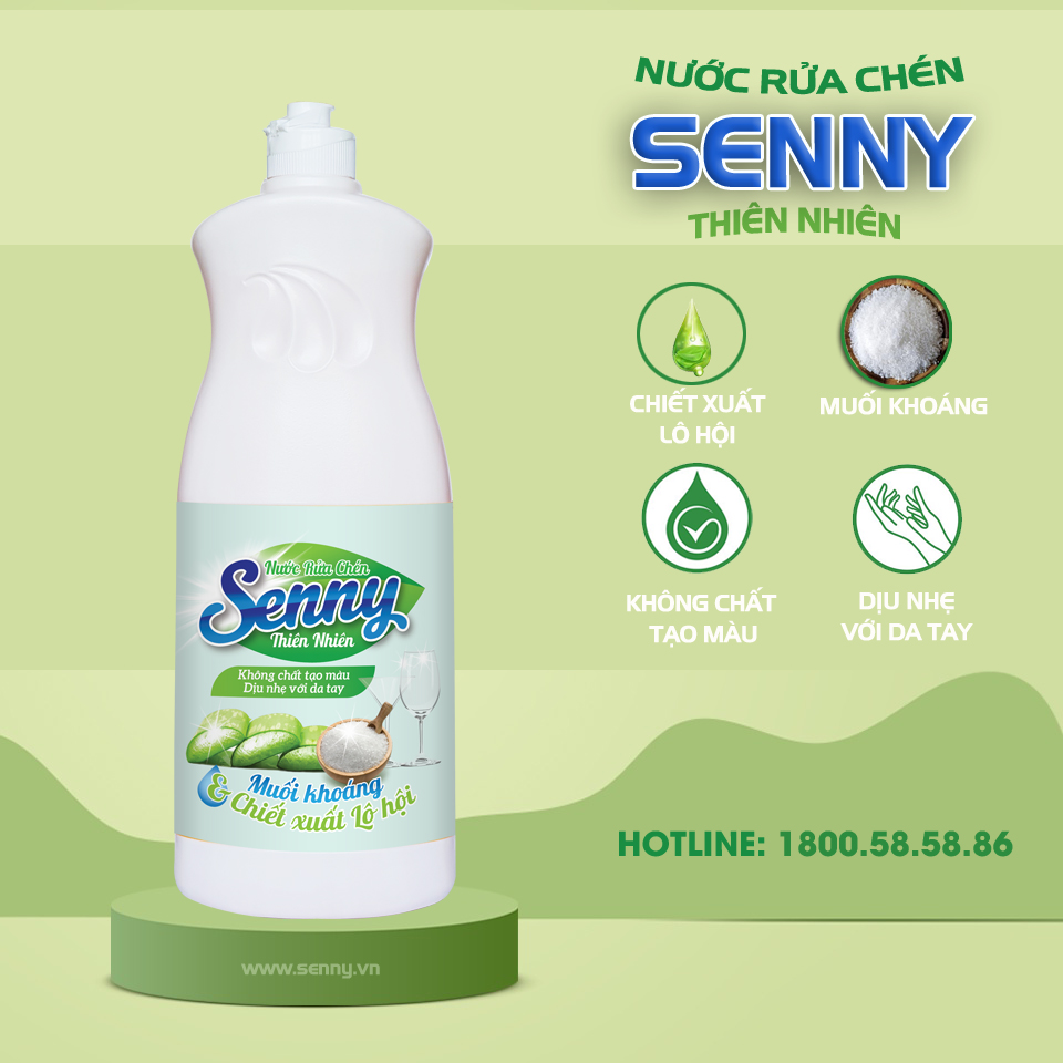 Nước rửa chén muối khoáng và lô hội của Senny là lựa chọn của nhiều mẹ nội trợ Việt với bảng thành phần thiên nhiên, lành tính và khả năng tẩy rửa vượt trội. Đây chắc hẳn là sản phẩm lý tưởng để mẹ thể hiện tình yêu và chăm sóc tốt nhất cho cả nhà cũng như đóng góp, bảo vệ cho môi trường sống chung của cộng đồng. Hiện nước rửa chén Senny thiên nhiên được bày bán tại các cửa hàng bán lẻ trên toàn quốc. Mẹ cũng có thể tìm mua sản phẩm qua Hotline(Miễn Phí): 1800.58.58.86.