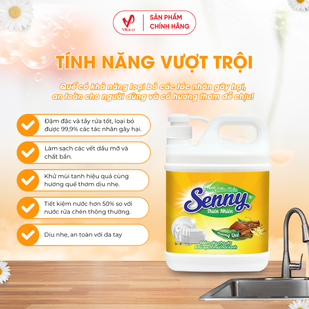 Biết được những công dụng tuyệt vời này, Senny đã cho ra mắt sản phẩm nước rửa chén mới được chiết xuất từ 100% tinh dầu quế tự nhiên, đánh bay 99.9% vi khuẩn, làm sạch các vết dầu mỡ và chất bẩn giúp chén đĩa luôn sạch bóng. Với sứ mệnh “Sản phẩm xanh vì sức khỏe người tiêu dùng”, Senny đang dần khẳng định thương hiệu của mình trên thị trường Việt Nam.