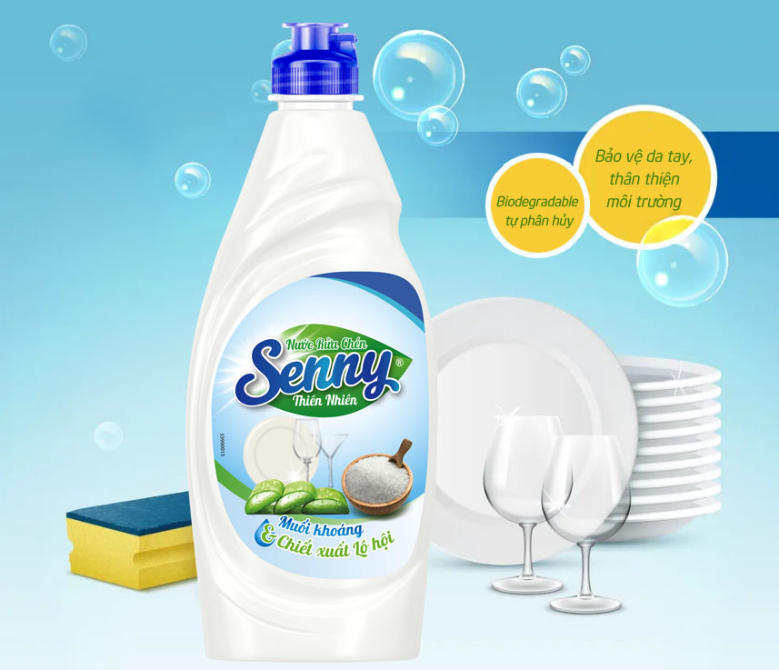 Senny Thiên Nhiên với thành phần Lô Hội và Muối Khoáng giúp dịu nhẹ chăm sóc da tay, Senny lô hội với khả năng khử sạch 5 mùi tanh khó chịu với khả năng diệt khuẩn đến không ngờ, giúp cho chén đĩa của gia đình luôn sạch dầu mỡ và vẫn thật an toàn.