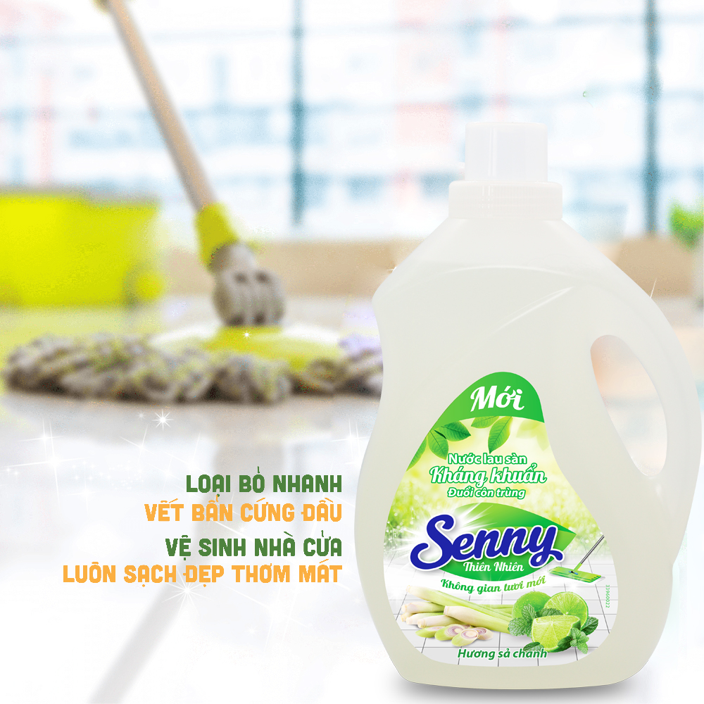 Nước lau sàn Senny thiên nhiên hương sả chanh diệt khuẩn, khử mùi sàn nhà, lau sàn nhà chống muỗi, kiến, gián và các loại côn trùng khác. Đặc biệt mang đến cho bạn một sàn nhà sạch tự nhiên với hương thơm tươi mát.