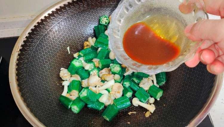 Đậu bắp thơm mềm, cộng thêm thịt sò điệp và nấm ngọc trắng, hương vị càng đậm đà, bổ dưỡng, ăn với cơm rất hợp, rất đáng để thử!