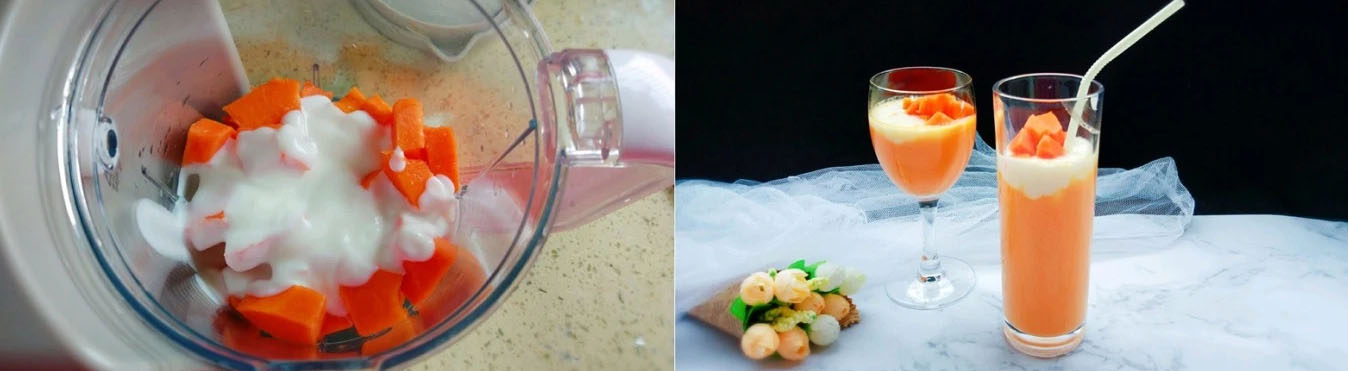 Sinh tố đu đủ làm theo cách trên chỉ với hai nguyên liệu nhưng lại tạo nên một thức uống vô cùng ngon miệng