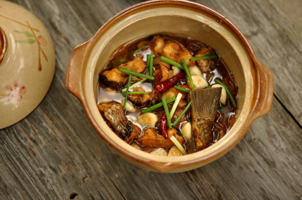 Bước 10: Khi cá đã chín, chuẩn bị bày ra bàn ăn thì bỏ hành vào, đậy vung một lát cho hành hơi tái là được, không cần kỹ quá. |