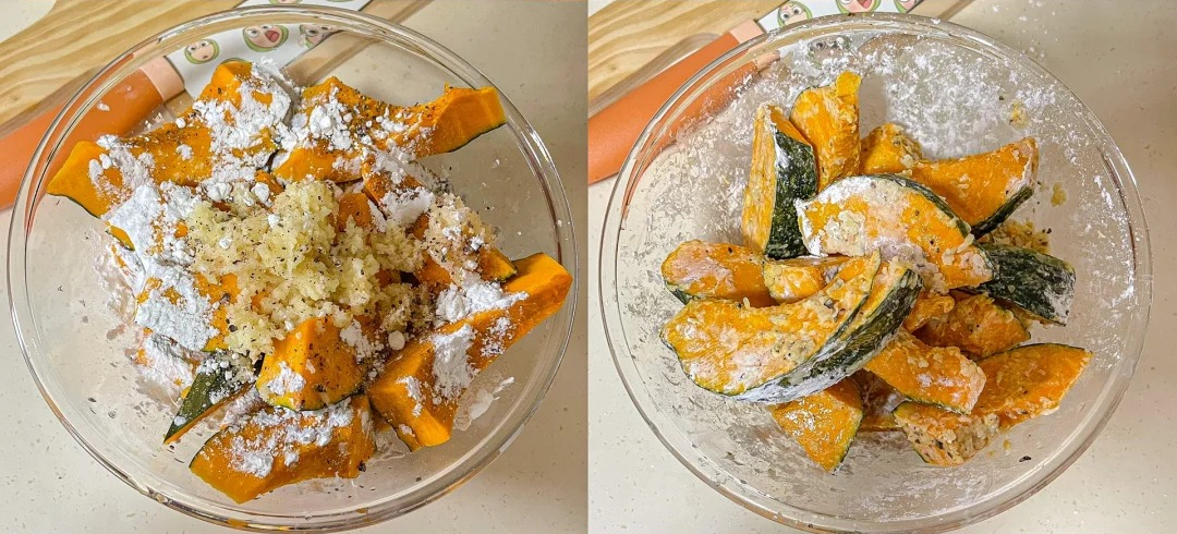 Không cần nêm nếm quá nhiều gia vị, bản thân bí đỏ đã có vị ngọt dịu, bùi béo tự nhiên, càng nướng càng thơm.