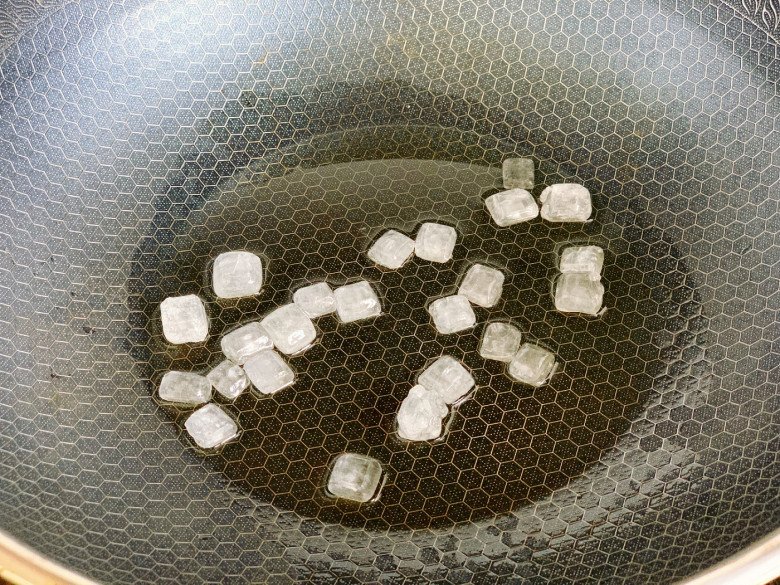 Cho đường phèn vào chảo với một ít dầu ăn, chiên ở lửa nhỏ cho đến khi đường phèn tan hết.