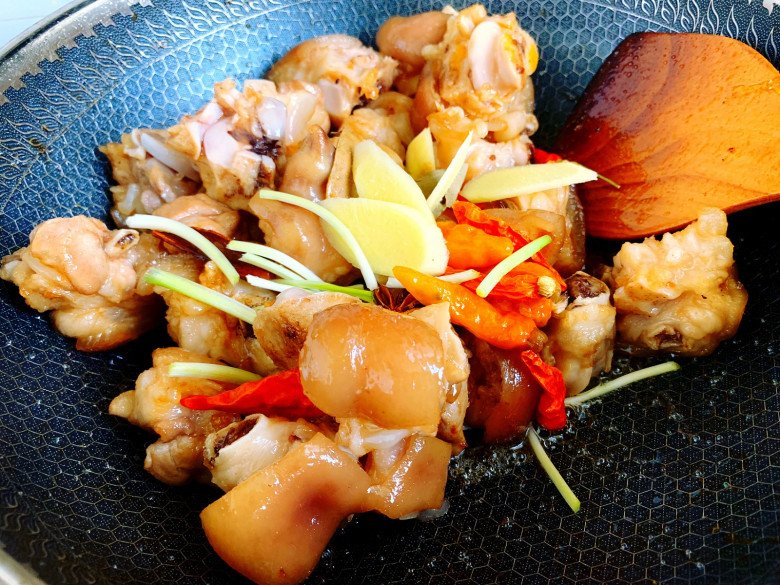 Móng giò kho mềm vừa phải vẫn có độ dai giòn ngon, đậm đà vô cùng hấp dẫn. Món này nấu vào những ngày se lạnh thì trôi cơm thôi rồi!