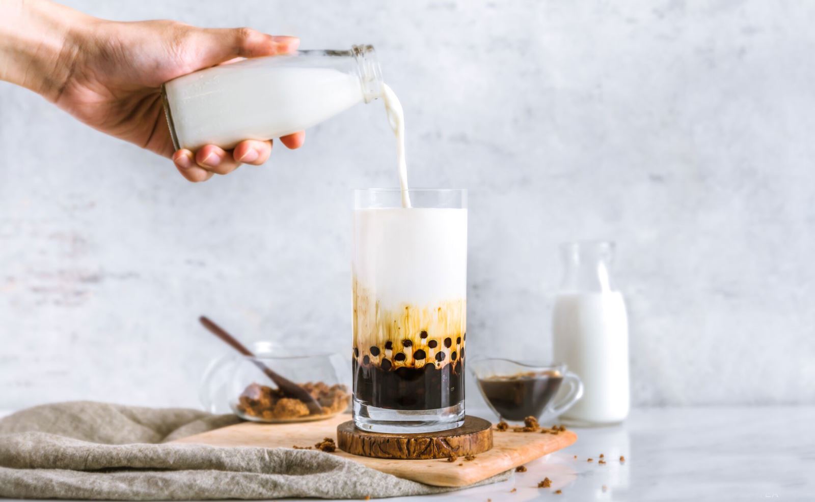 Rất đơn giản, bạn chỉ cần cho trân châu đã ngấm đường vào ly, đổ sữa tươi vào, thêm đá và thưởng thức hương vị béo ngậy độc đáo nhé!