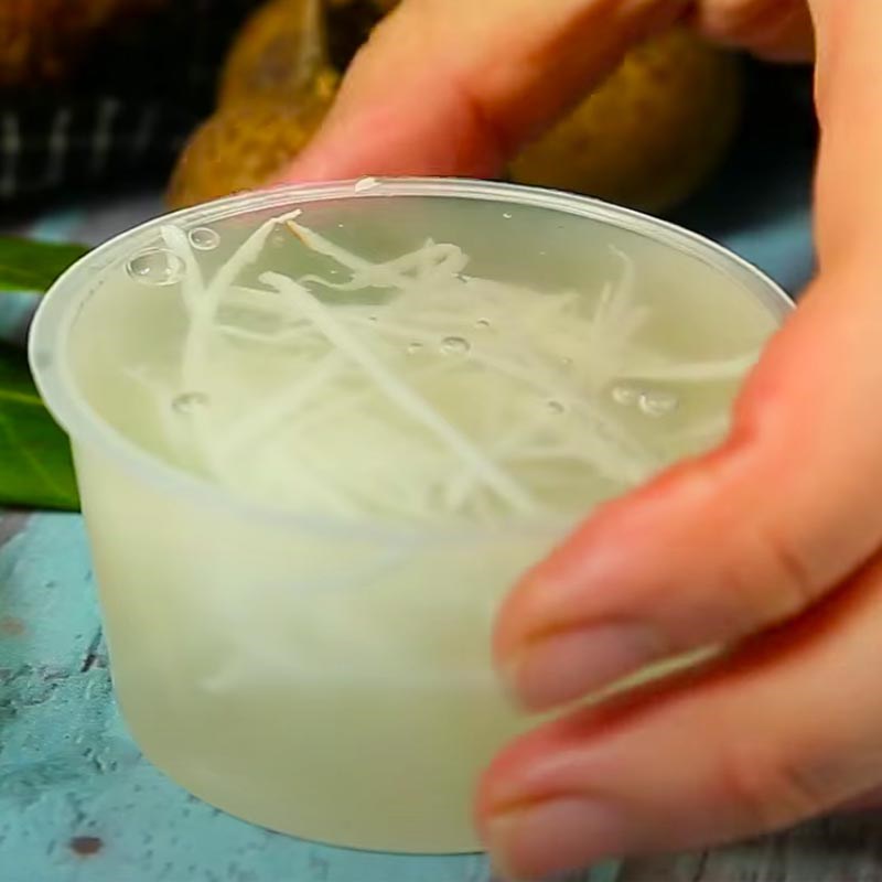 👉 Nhồi cùi dừa vào bên trong quả nhãn
